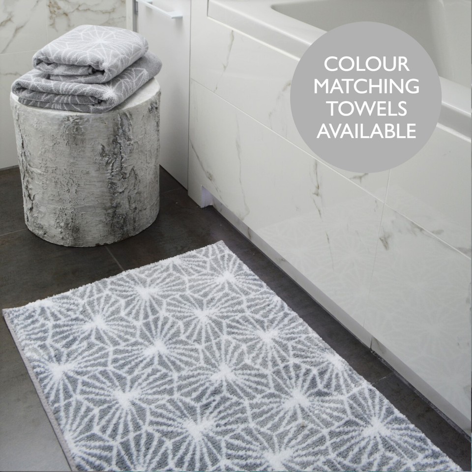 These jacquard designer bath mats in geometric design feature a supersoft microfibre deep pile, pampering your feet and adding some luxury to your bath time routine.
