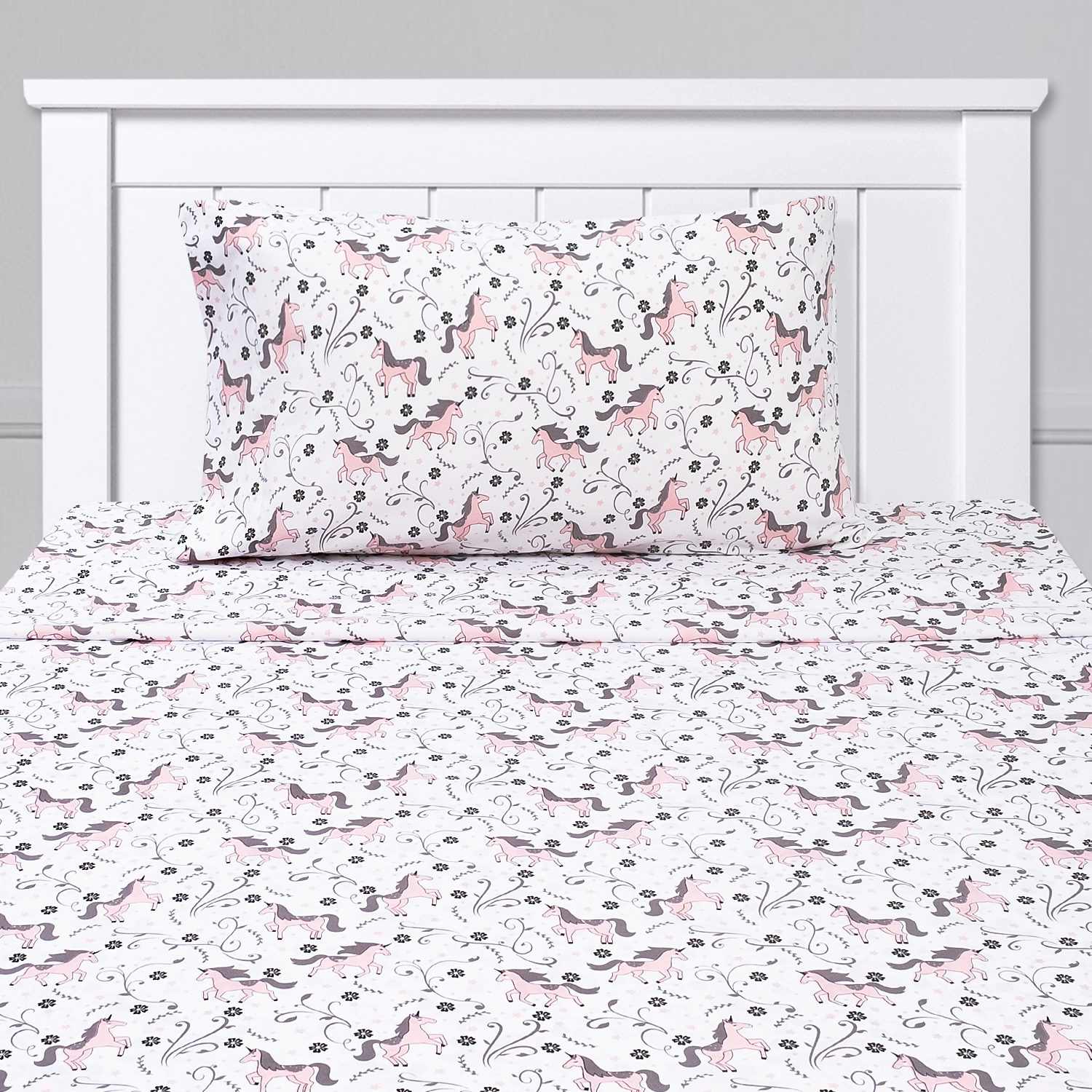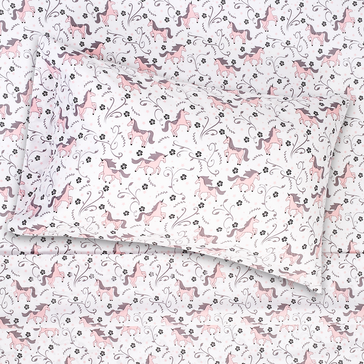 Add a touch of charm and enchantment to their sleep space with our ultra soft bedding featuring magical pink unicorns.