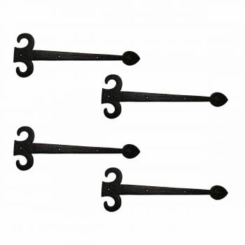 Give your door that classic colonial look without the hassle of real strap hinges using these beautiful false hinges. These Antique Fleur De Lis Style dummy strap door hinges are made of heavy-duty wrought iron material. Featuring our proprietary RSF powder coat finish, these faux hinges will keep your doors looking vintage for years to come.