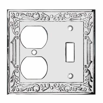 Victorian Chrome Toggle Outlet. Beautiful Victorian inspired switchplates gives any room that perfect touch! Make of die cast brass with a chrome-plate finish. Exquisite design and quality.