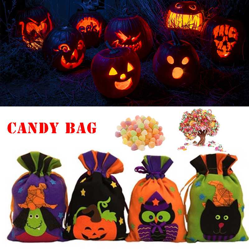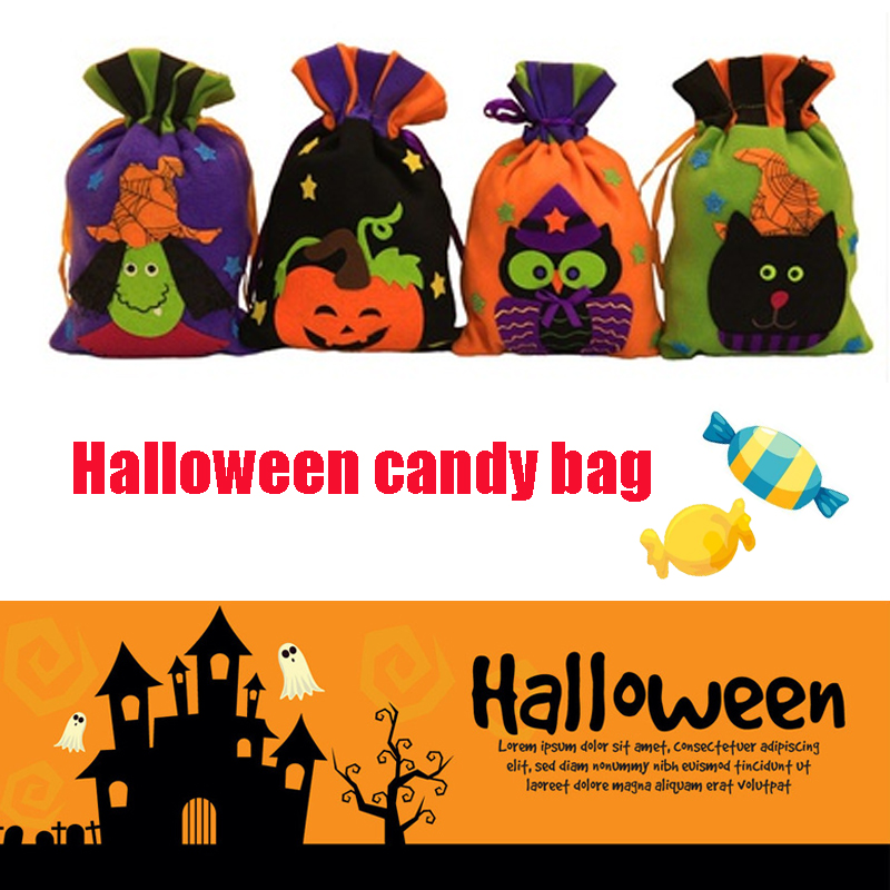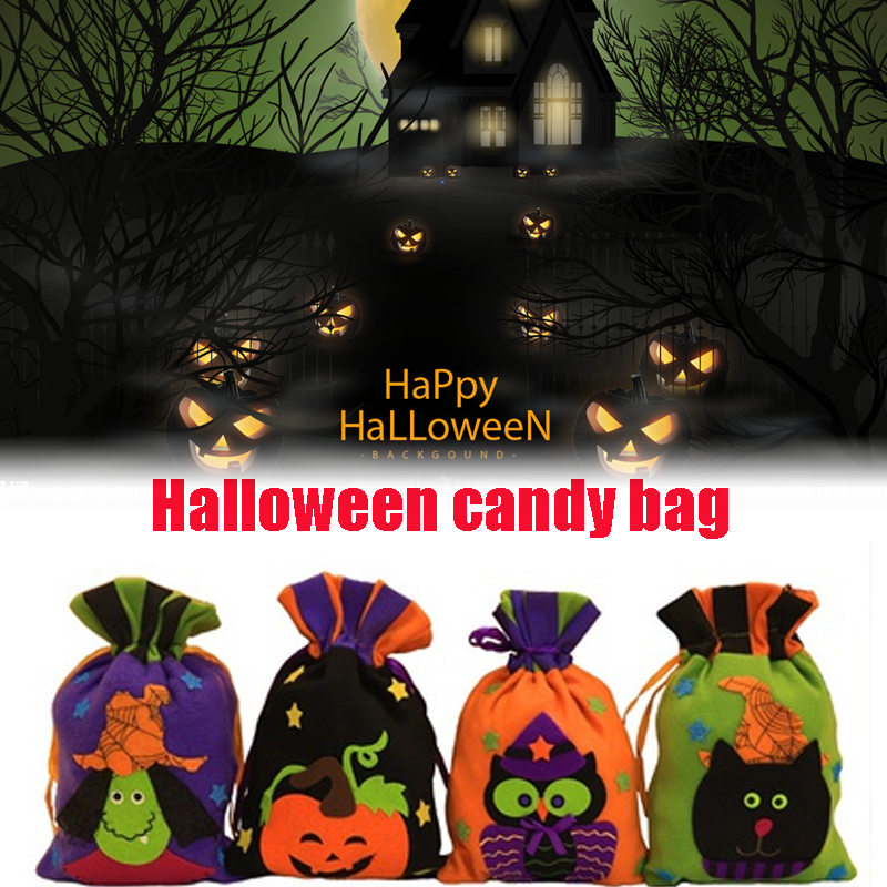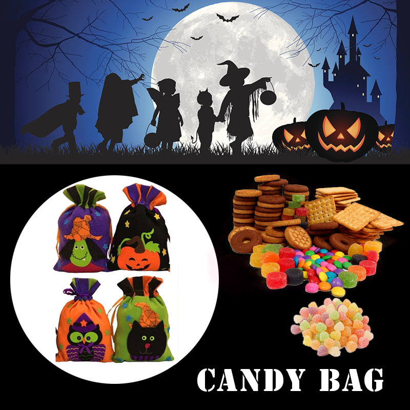 Specification: Material: flannel fabric Color: multicolor Pattern: A - witch, B - owl, C - pumpkin, D - cat (optional) Process: semi-manual, semi-mechanical Use: Halloween candy pouch, drawstring bag Size: 26.5 * 17cm