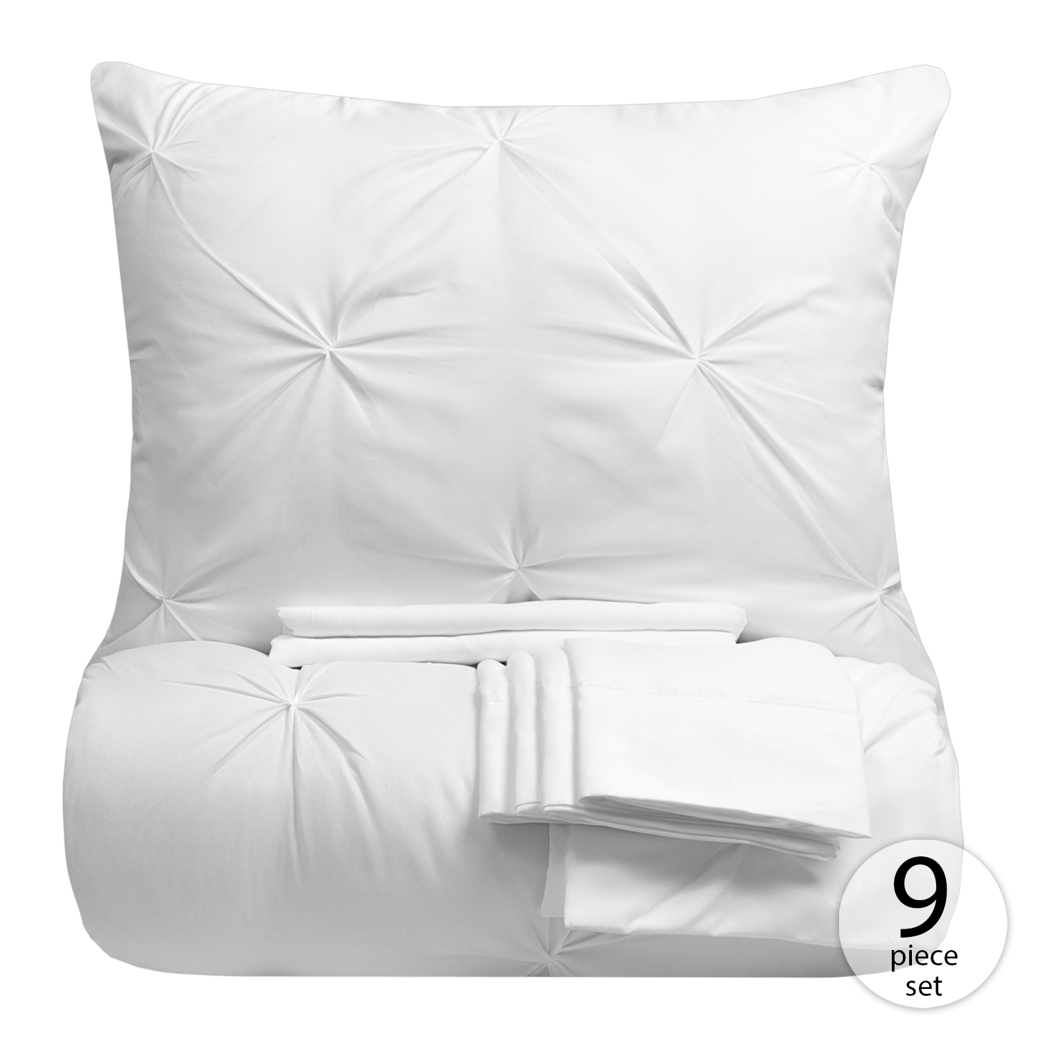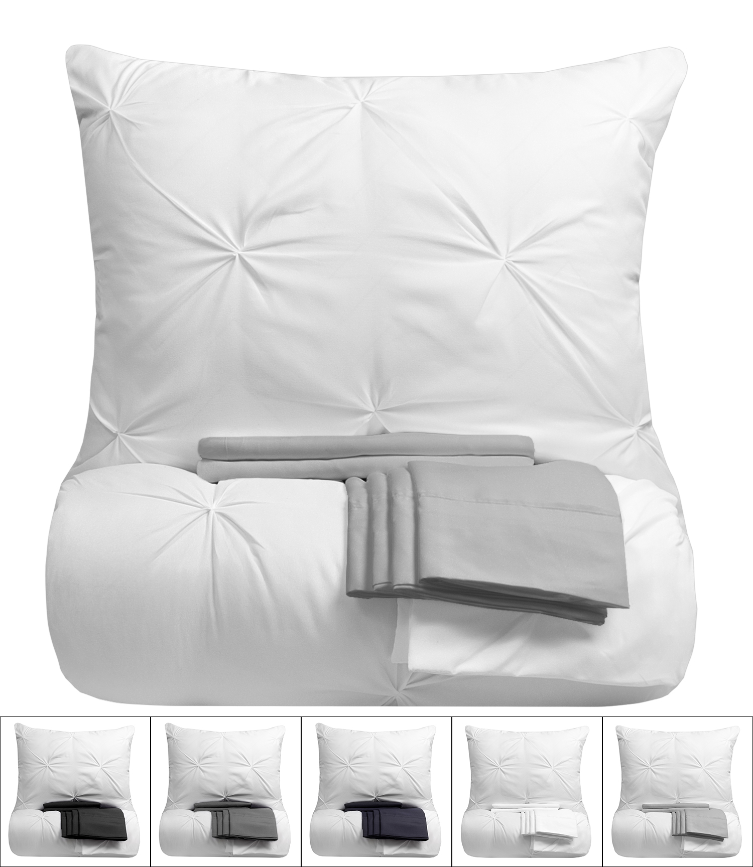 Hudson Pintucked Solid Color Polyester Comforter, Pillow Sham cover and sheet set. With this set you get a Pintuck Comforter & pillow sham set, and a Super soft solid color 6 piece sheet set.