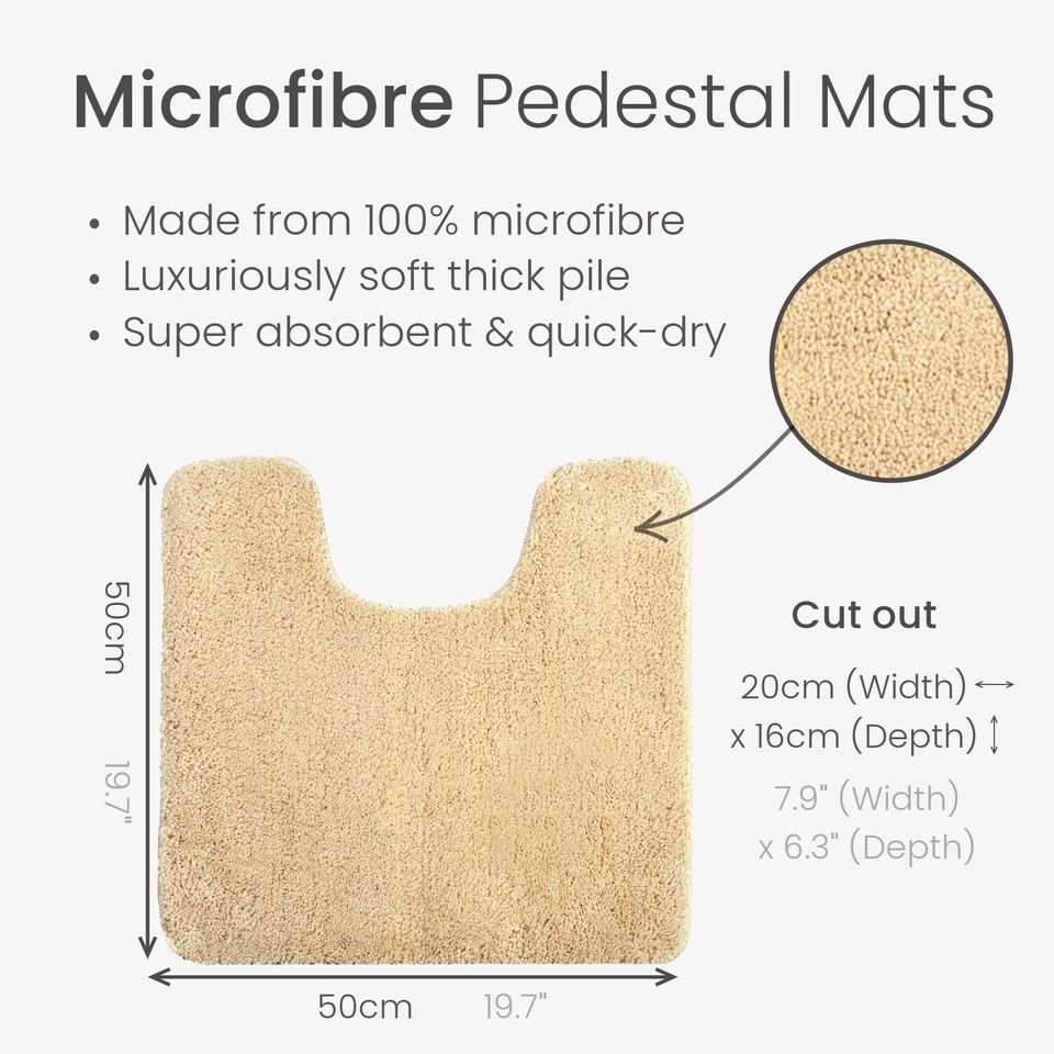 Super Soft Toilet Pedestal Mat Non-Slip Deep Pile Absorbent Microfibre 50 x 50cm