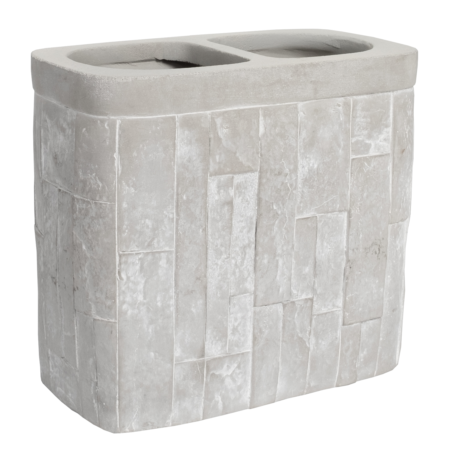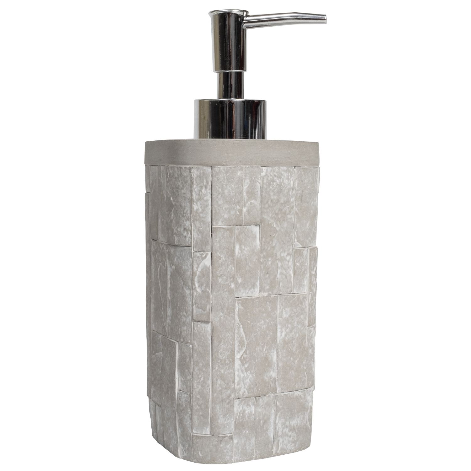 The Avalon bathroom accessory set adds sophistication and a touch of glamour to your bathroom décor. This modern handcrafted resin collection is luxurious, stylish, and helps keep your bathroom décor clean, fresh, and organized. The set includes: a tumbler, lotion/soap dispenser, toothbrush holder and soap dish. The Avalon accessory collection is designed with a natural grey cemented stone with raised tiles for a subtle addition of style. Each piece is hand crafted in a durable concrete stone. Each item is easy to wipe clean and made to last a lifetime. This ultra-luxurious collection will surely add contemporary charm to your bathroom.