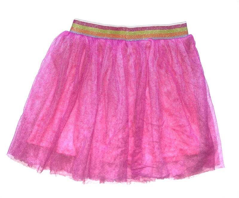 Truly Me girls bold pink tulle tutu skirt with rainbow stripe band size 3T.