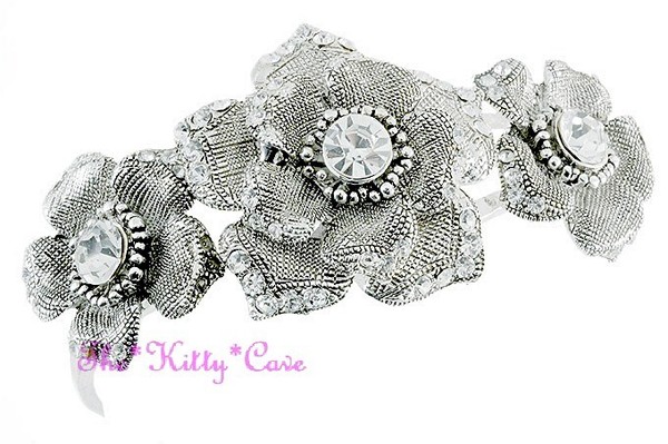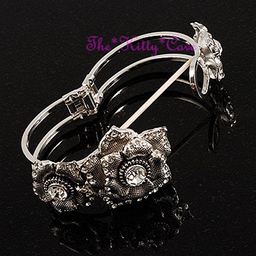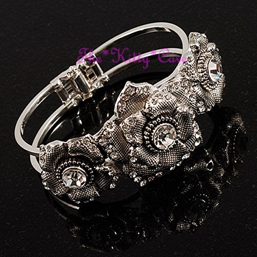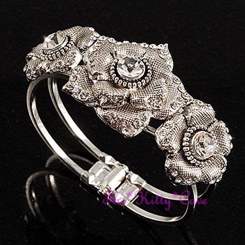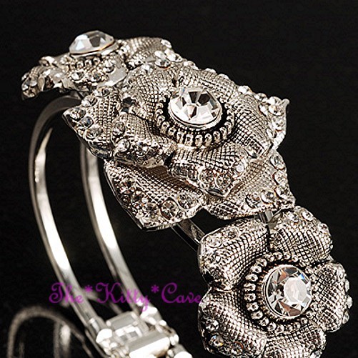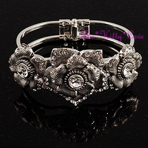 The bracelet is crafted in with a tension set hinge to the back, so that is opens wide to enable an easy slip on/slip off movement, The central floral station measures approx 9cm across, 4cm wide and 18mm high (3.54 x 1.57 x 0.70 in).