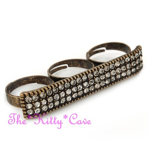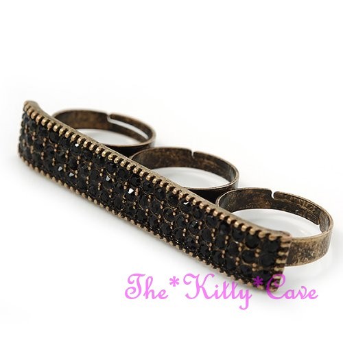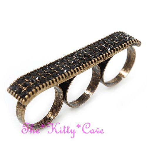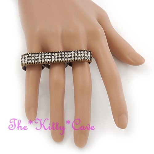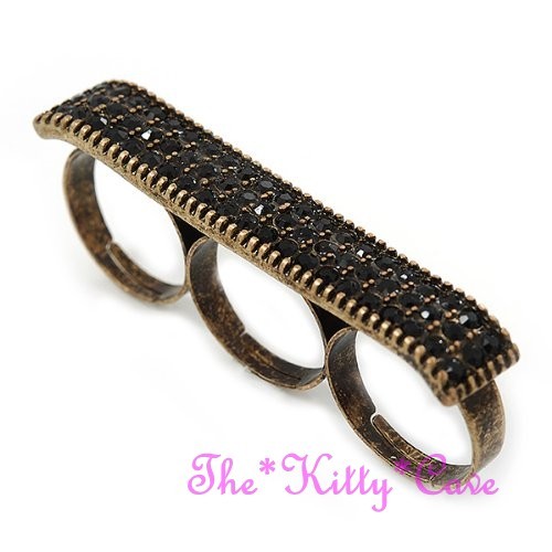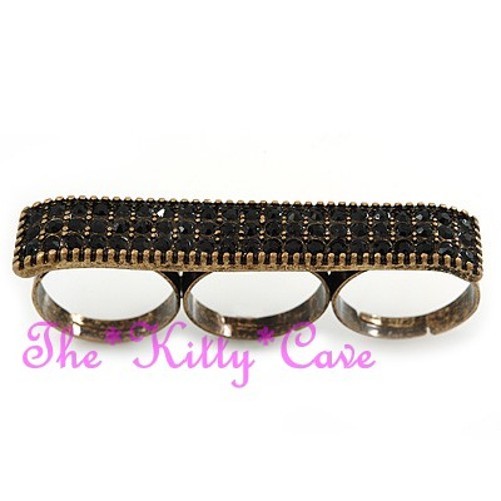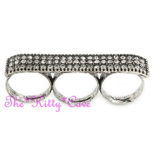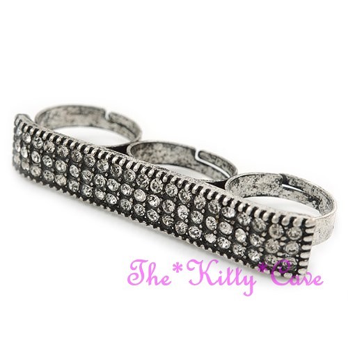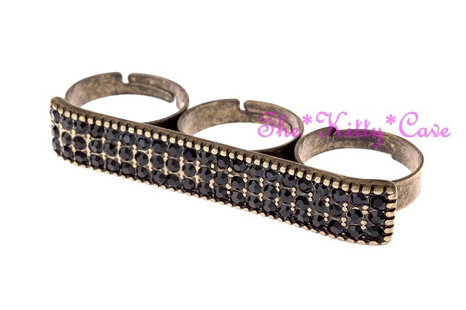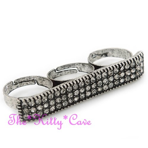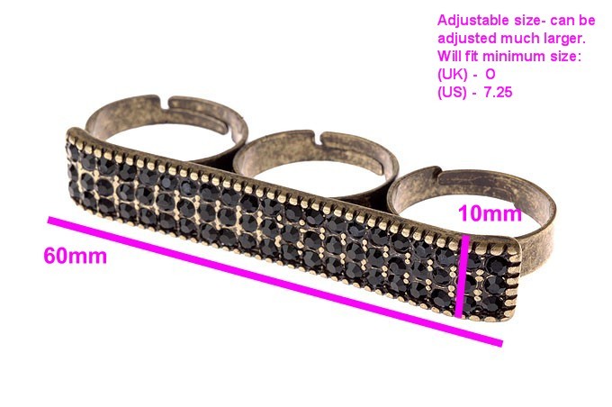 Featuring a wide plate-shaped design that spans across three fingers, set with either twinkling Jet Black or sparkling Clear White Swarovski Crystals, for a dazzling Hip Hop look!