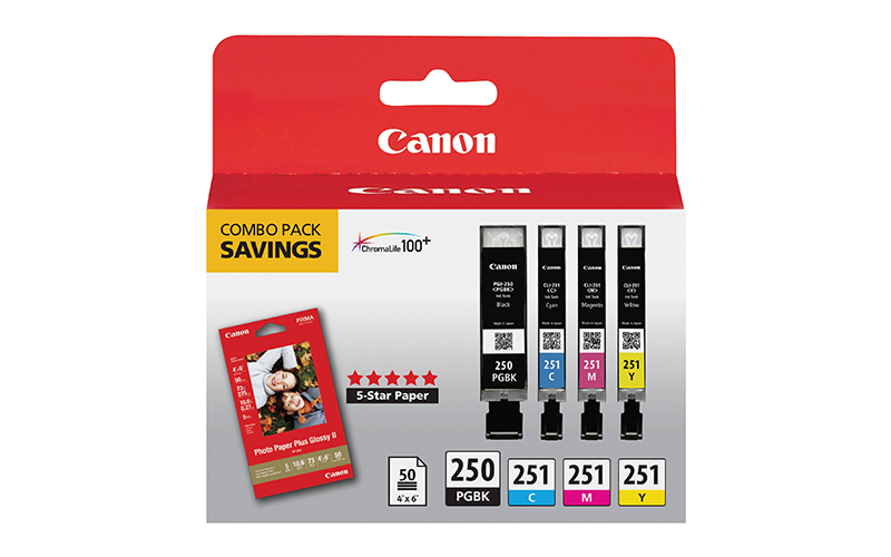 OverviewA combo pack of Standard Yield Ink Cartridge that includes 1 Each OEM# 6497B001, 6514B001, 6515B001, 6516B001, 50 Sheets Photo Paper. |