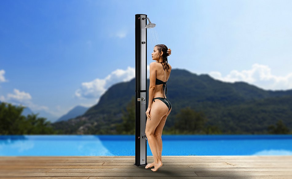 Überzeugen Sie sich selbst! Unsere Solardusche ist Vergleichssieger bei vergleich.org und wird Sie mit ihrem eleganten Design, dem integrierten Thermometer, der Tankgröße für mehrere Duschgänge, uvm. beeindrucken.