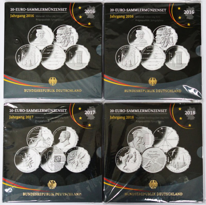 4 x "20-Euro-Sammlermünzenset" (mit je 5 Münzen):