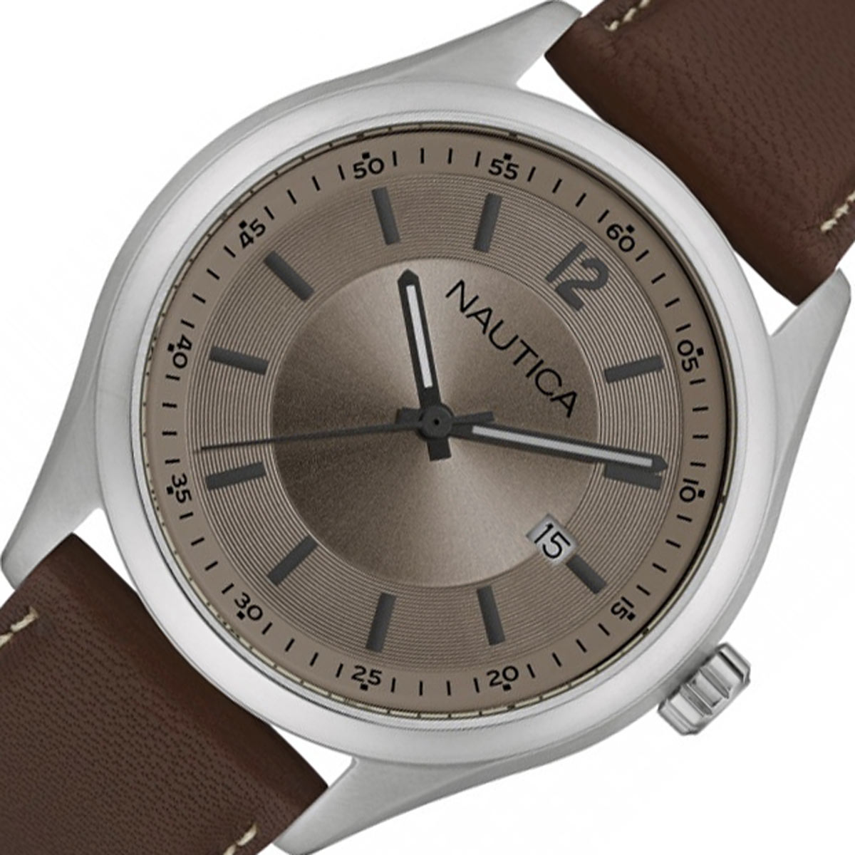 - Stainless Steel Case. Brown Leather Strap