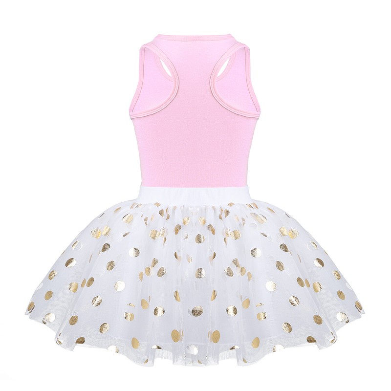 4 layers tutu skirt, top mesh layer is adorned with shiny polka dots, 2 mesh layers and 1 layer lining. Elastic waistband with a stitched bowknot at front.