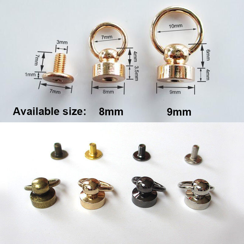 Ball Post with O-ring Rivet Stud Nail Round Head Screw Back For Leather Craft