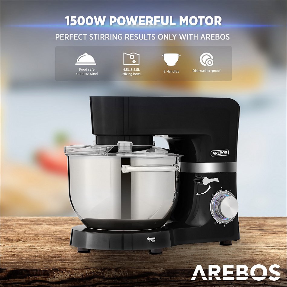 Il robot da cucina è dotato di un potente motore da 1500W e di un robusto alloggiamento in ABS. Questo robot da cucina non avrà nessun problema a gestire sia impasti morbidi per torte che impasti più densi.
