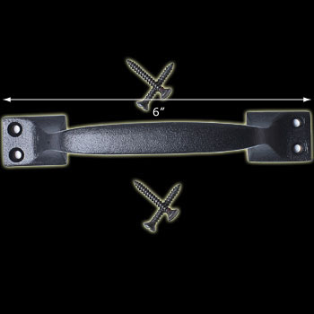 The package includes 4 screws complementing the black wrought iron door pull handles. The screws can rust with time. These are carefully wrapped and packed to avoid any scratches during the transition. We recommend using different screws for outdoor applications.