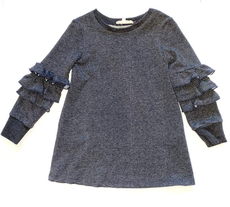Truly Me girls charcoal grey knit top with long ruffled sleeves size 4.