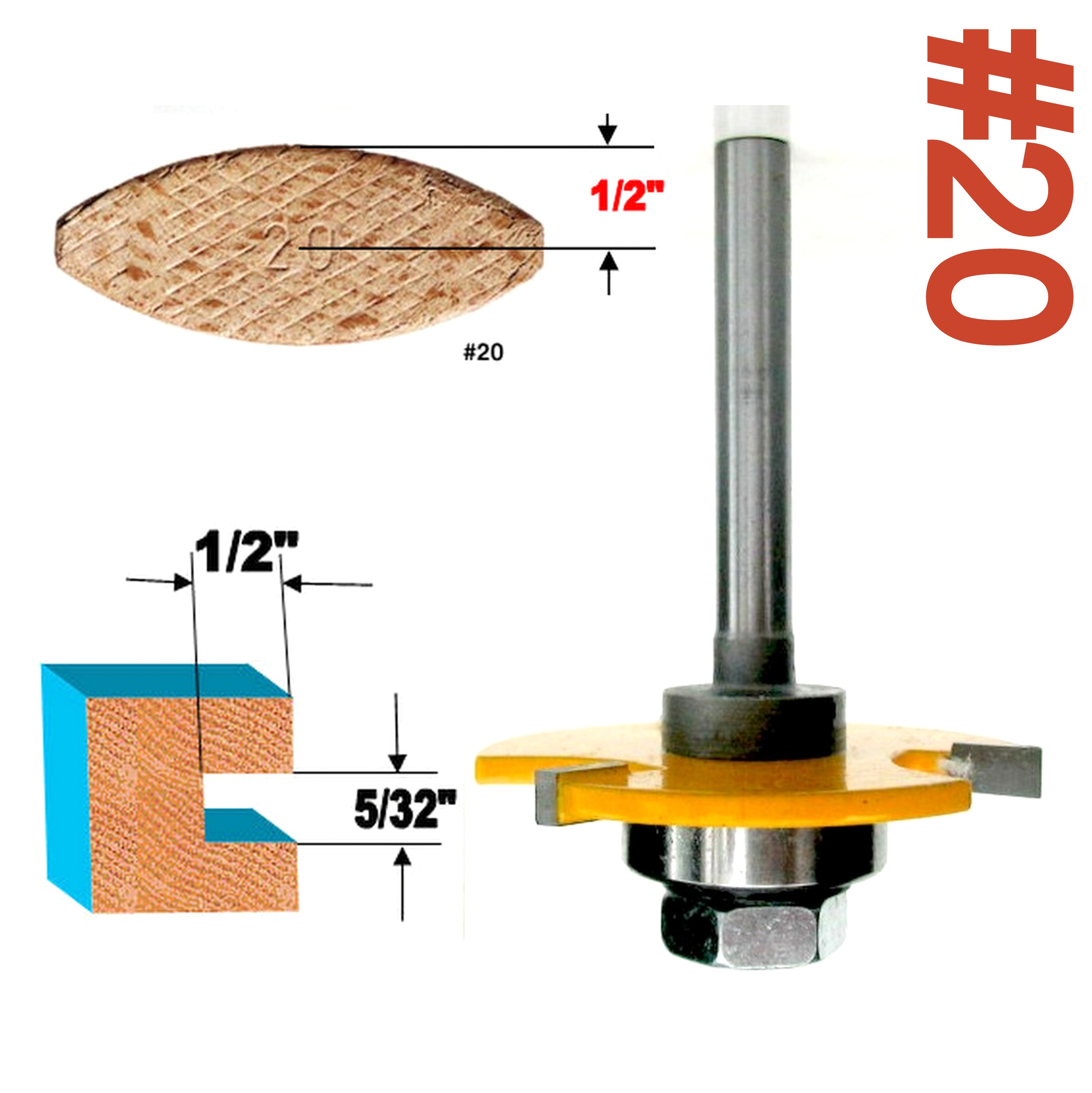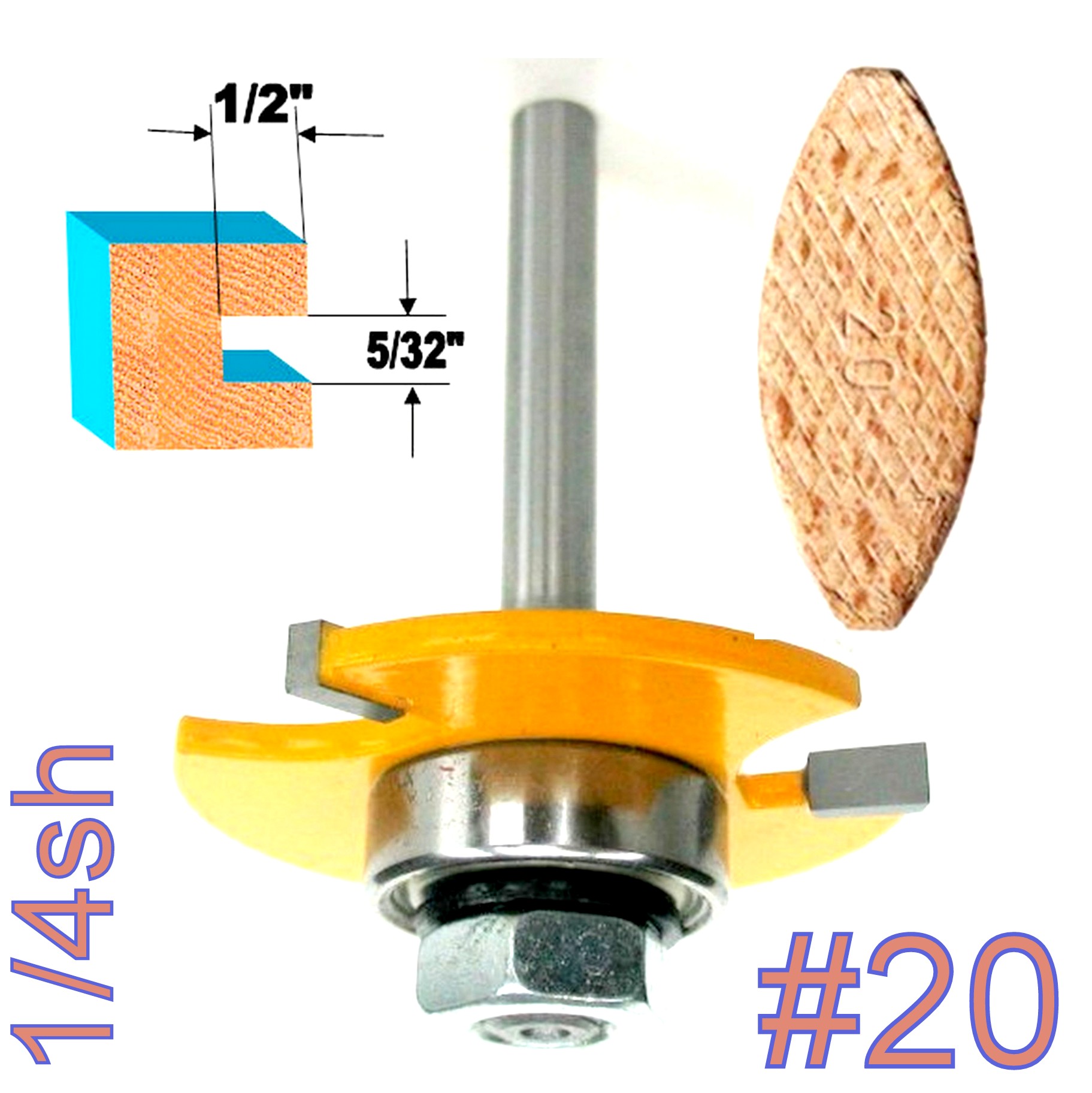 1 pc 1/4 Shank #20 Biscuit 5/32"x1/2" Slotting Router Bit |