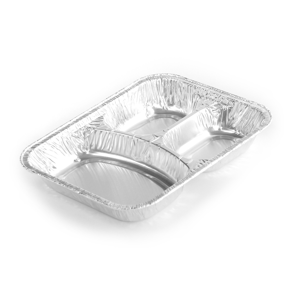 This 3 compartment aluminum pan is a perfect option for serving neatly portioned hot meals. The three compartments make it easy to keep the sides an the main entree separated and the aluminum container will allow you to keep the food warm. Great for cafeterias or hospitals or for to-go options.