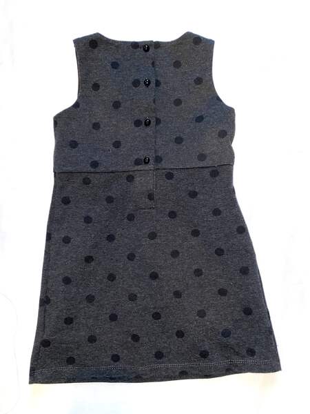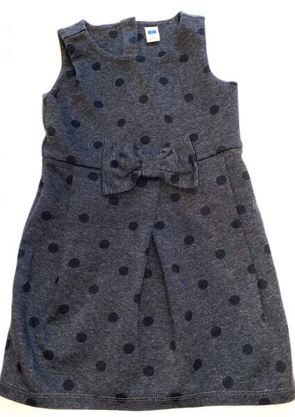 Janie & Jack girls stretchy thick ponte charcoal bow dress with black polka dots and bow at waist size 5.