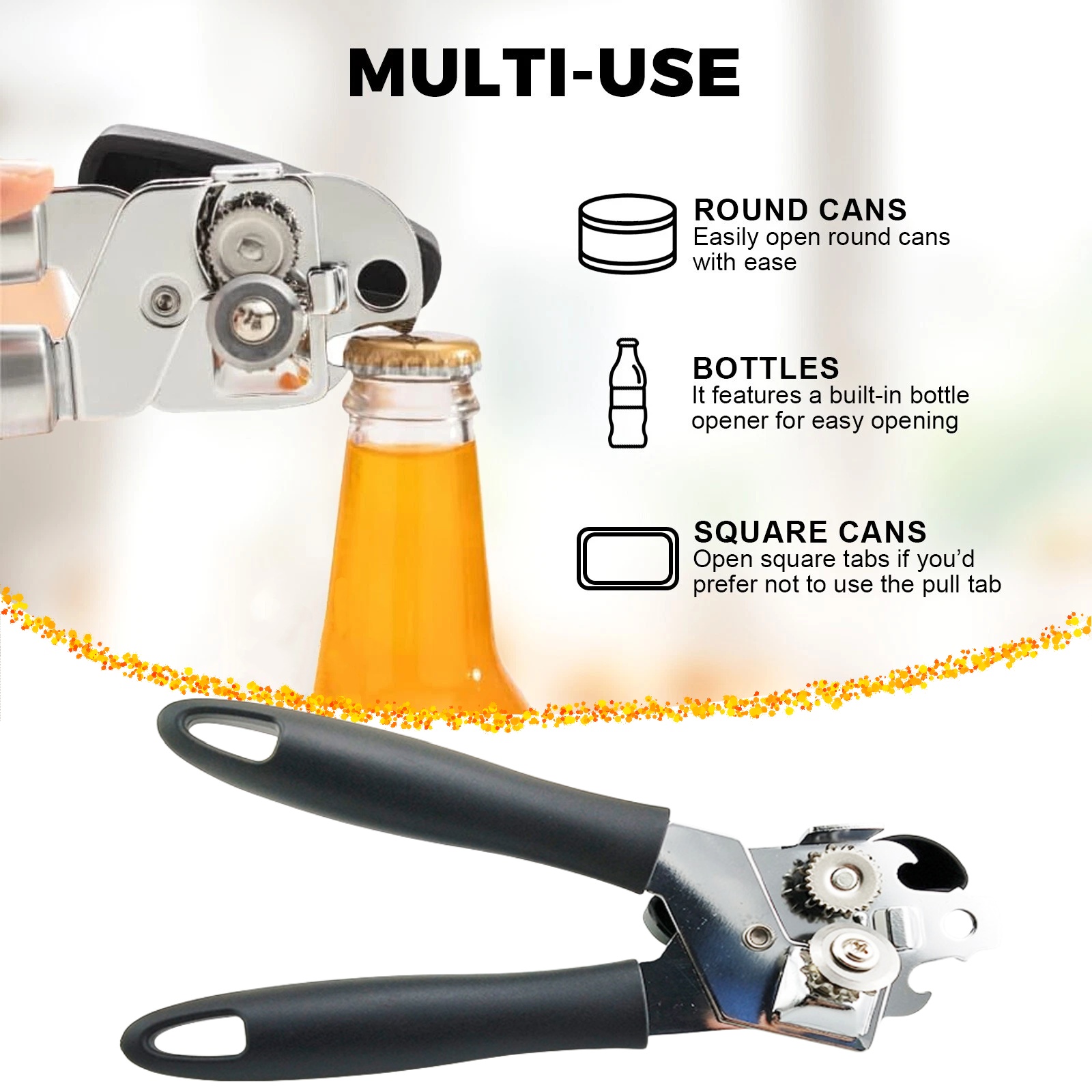【All-in-One Multitasker】More than just a can opener! The built-in bottle opener pops off caps from beer, soda, and other bottles in one quick pry—ideal for celebrations or everyday use.