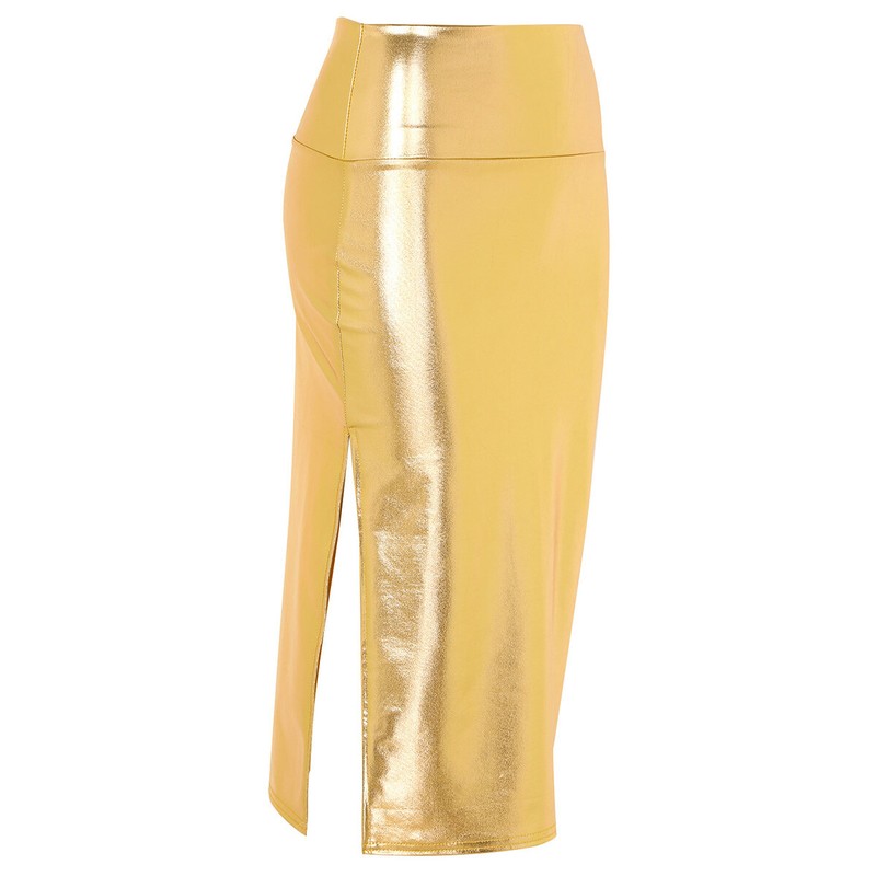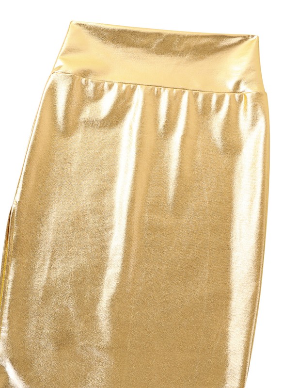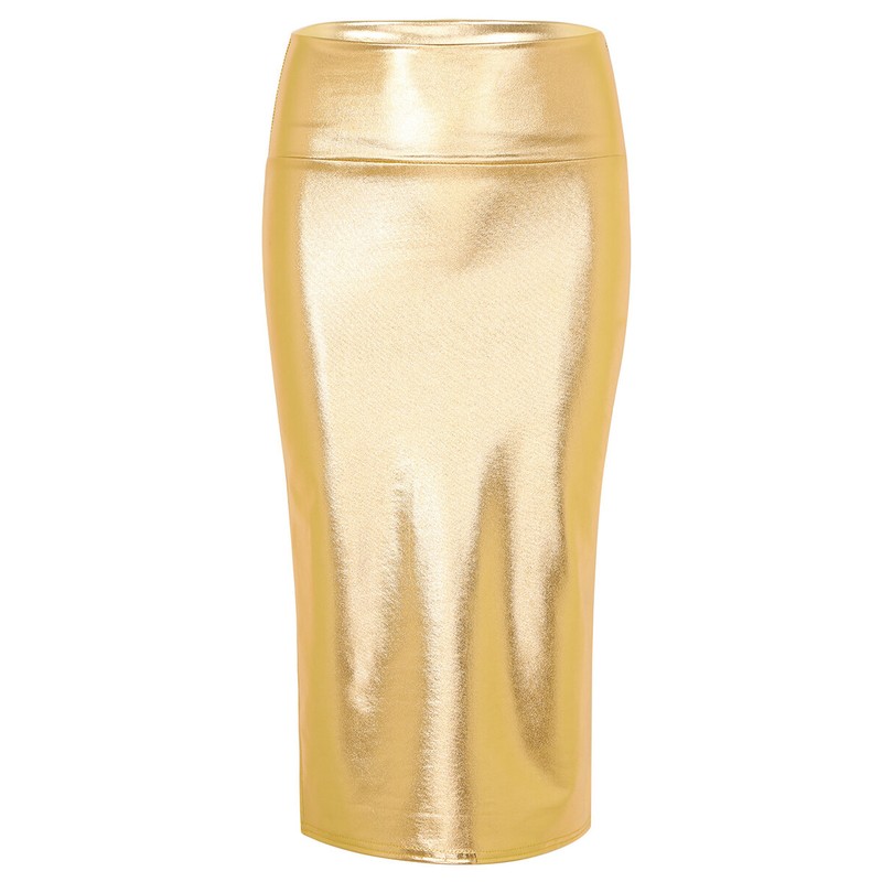Women ladies fashion shiny metallic midi pencil skirt bodycon skirt, pull on closure.