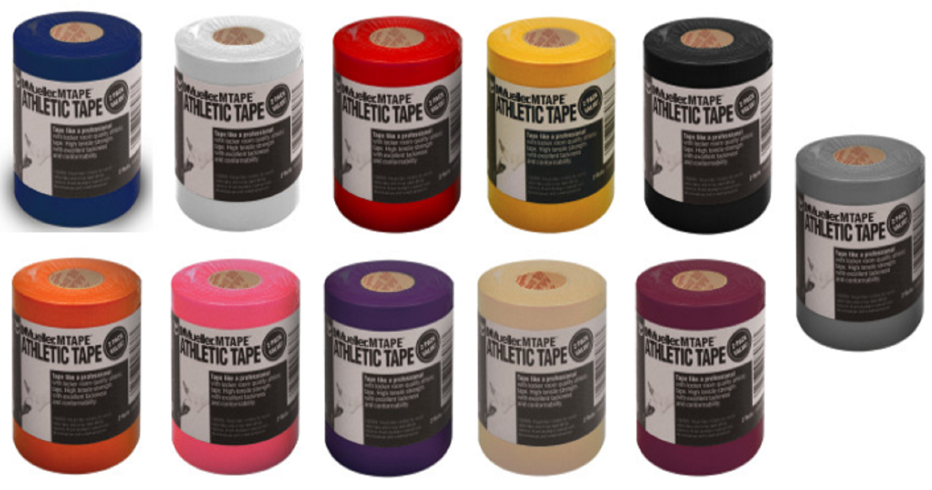 Mueller Mtape Athletic Tape - Easy to tear and unwinds to the core for easy use and great support. Top-quality athletic tape for all sports medicine applications. Rolls are made of hospital-grade, 100% cotton backcloth. High tensile strength, excellent tackiness and conformability. 100% cotton, zinc oxide athletic tape. Team colors will not bleed.