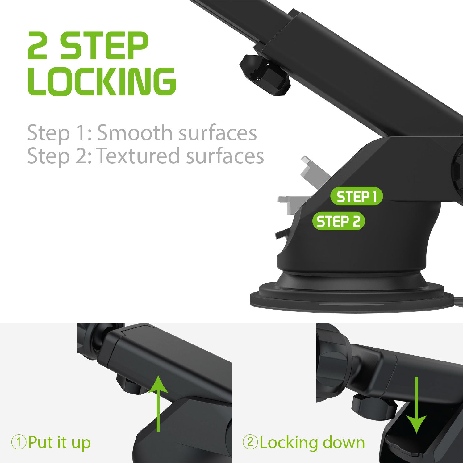 Cellet Telescoping Arm Car Phone Holder – Adjustable Dashboard & Windshield Mount for Smartphones