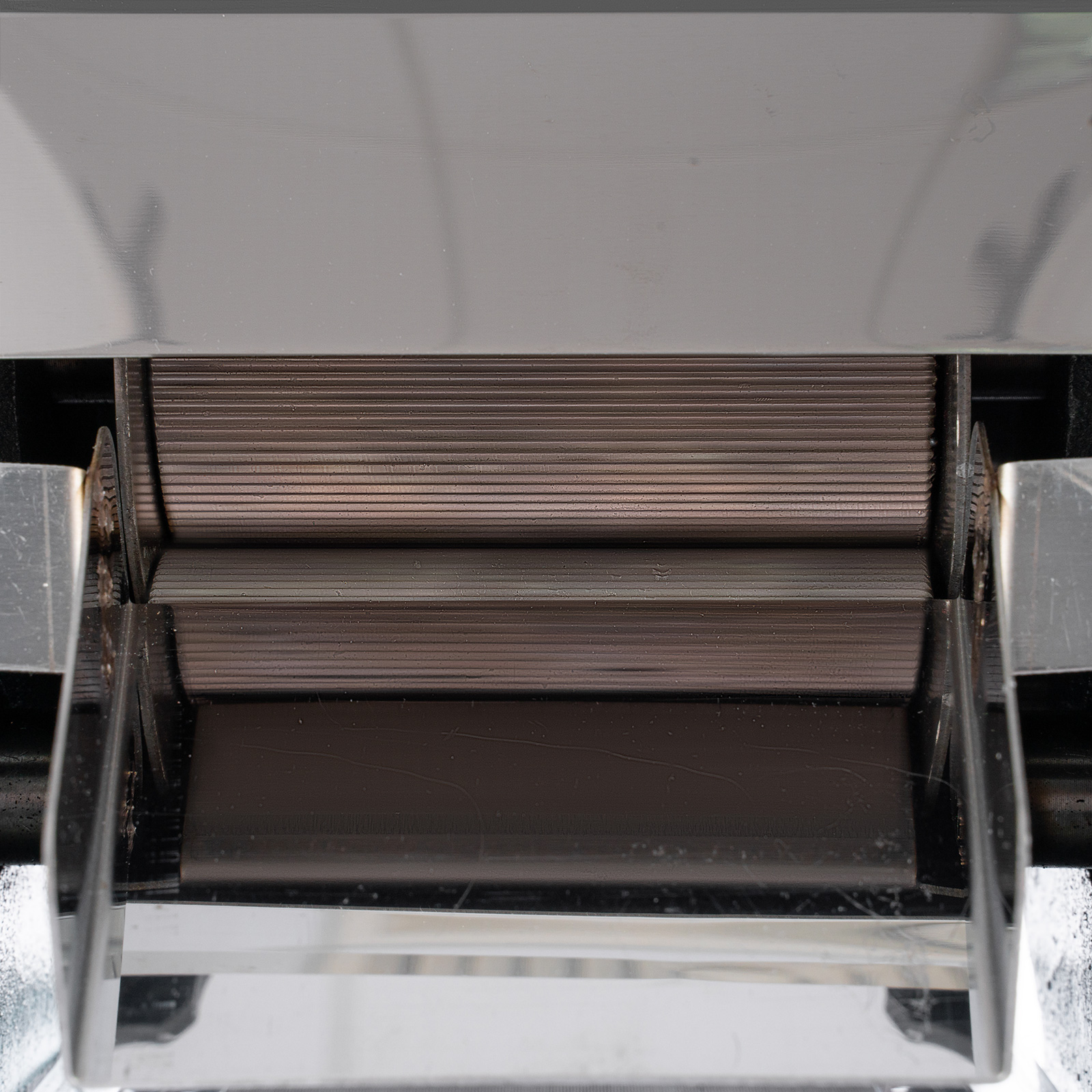 The material of three-roller is not stainless steel. In older to prevent rust please clean after use.