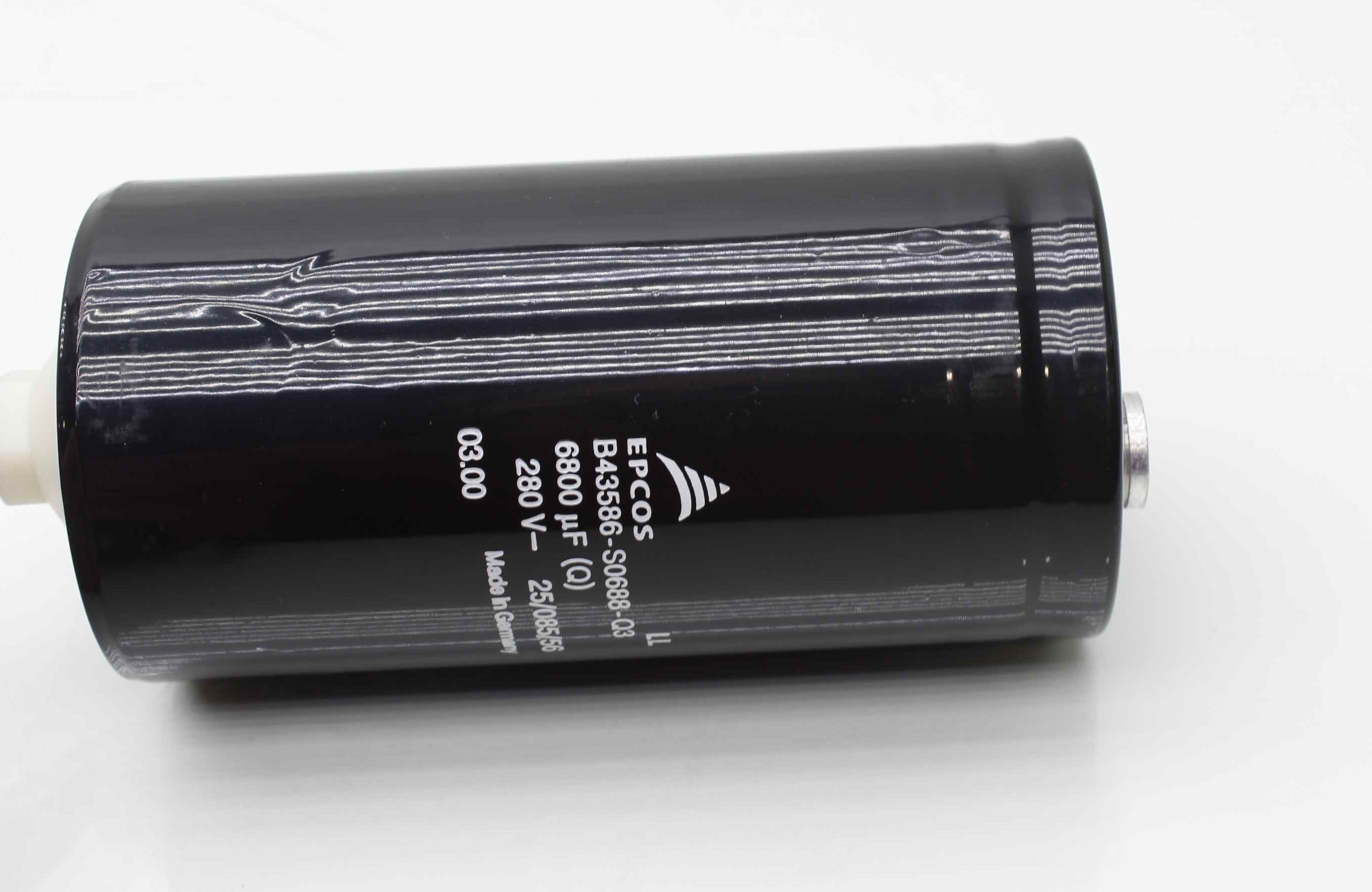 Here is an Epcos B43586-S0688-Q3 electrolytic capacitor. It is in excellent condition as shown, with almost no exterior wear.