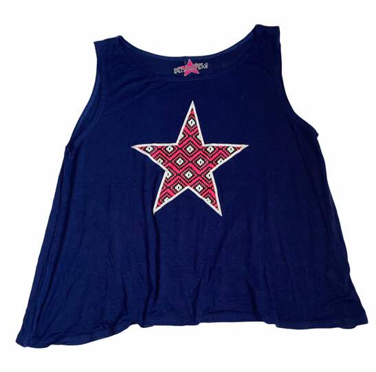 Hannah Sky girls soft and slinky swing tank in navy with black and hot pink geo print star size 14/16.