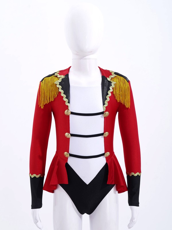 Kids Girls Circus Costume Long Sleeves Color Contrast Patchwork Jumpsuit with Tie.