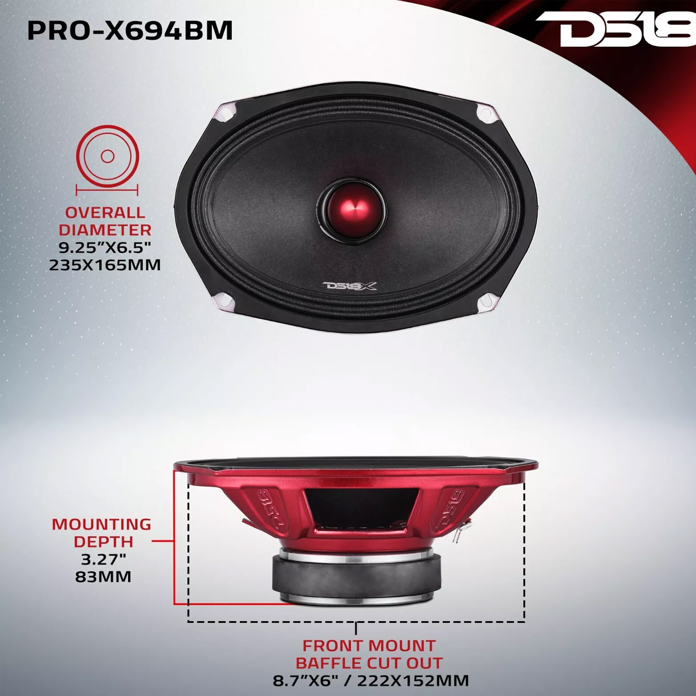 DS18 6 x 9" Midrange Loudspeaker PRO-X694BM (2-Pack)