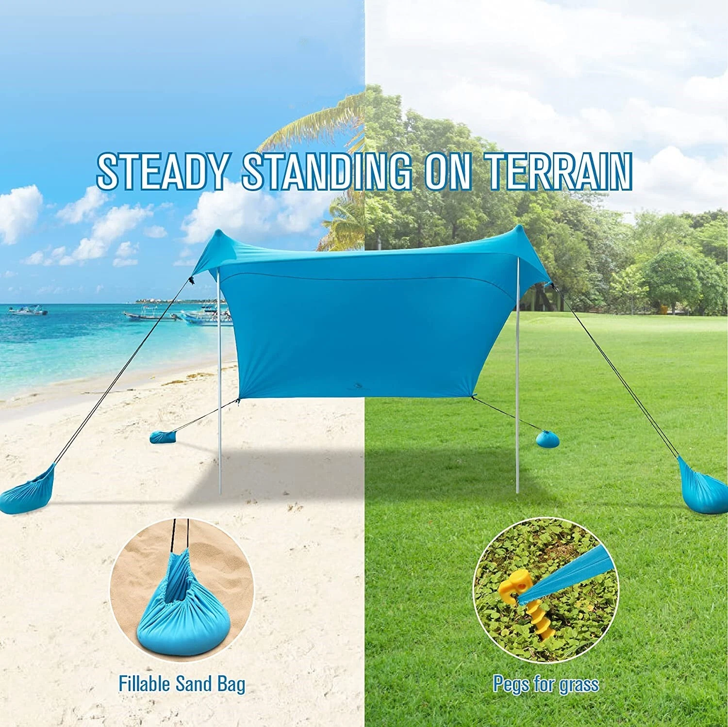 - 🎉【Adjustable Shade】: As the sun moves, simply move your sandbag anchors or the poles to change the angle of the shade, to get the best shelter from the sun and keep enjoying the outdoors