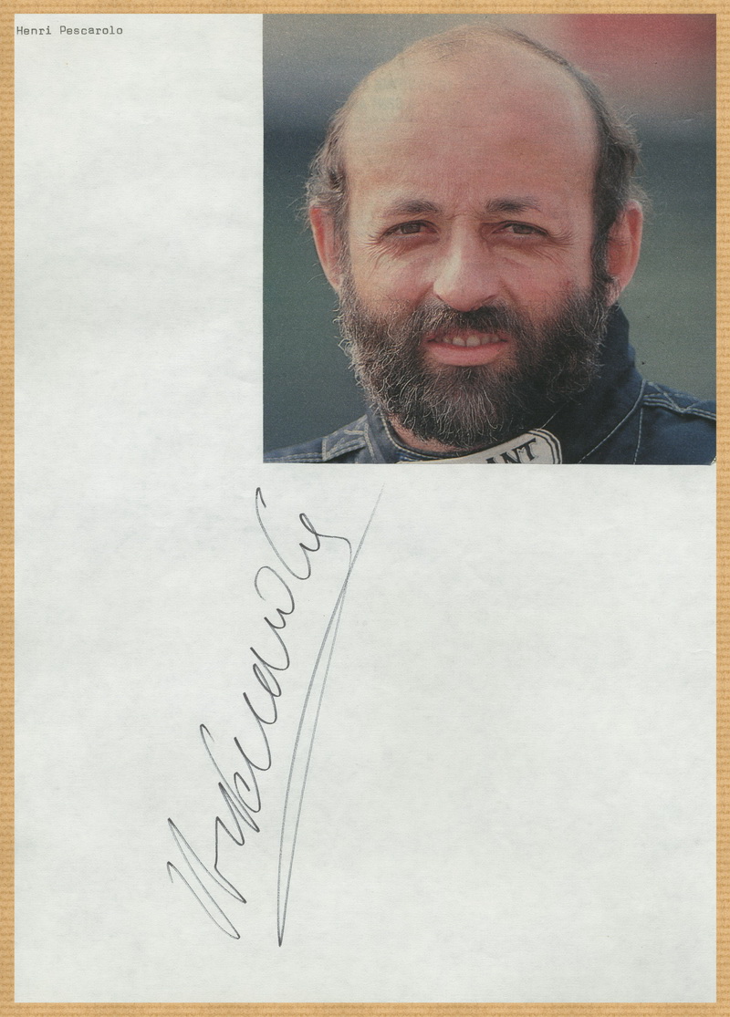 Feuille (avec une photo de magazine collée) signée dans les années 80.
