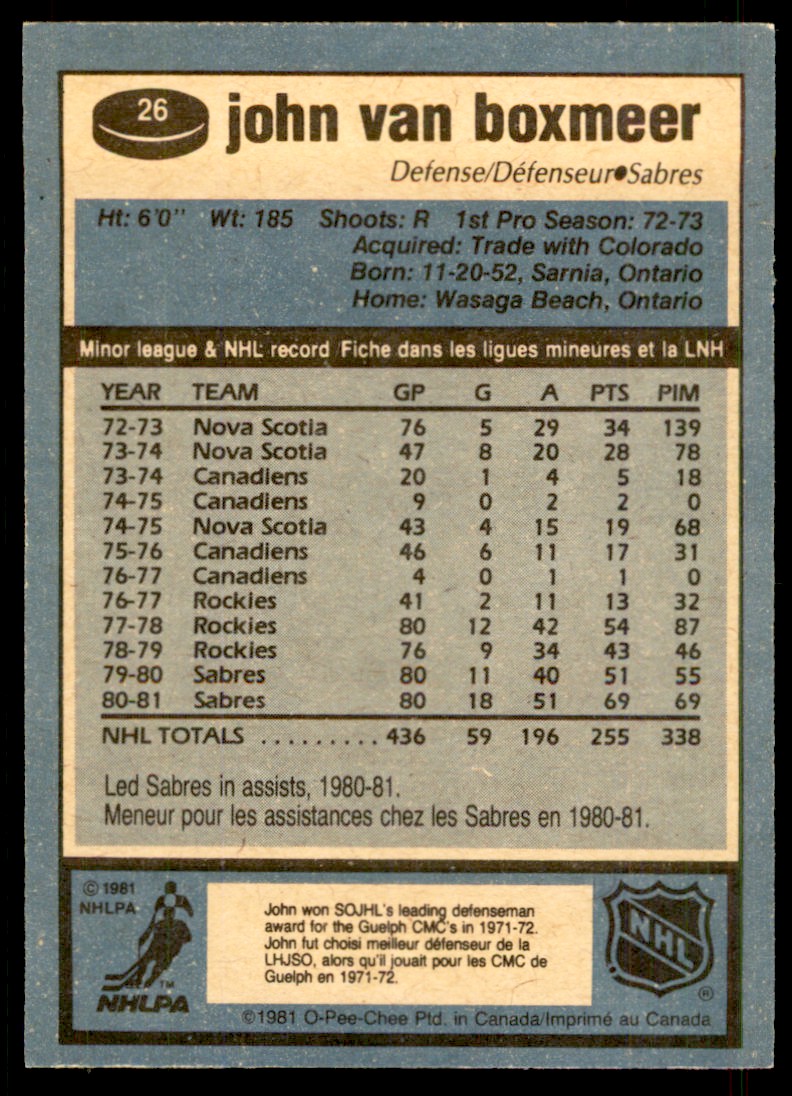 1981-82 O-Pee-Chee 26 John Van Boxmeer