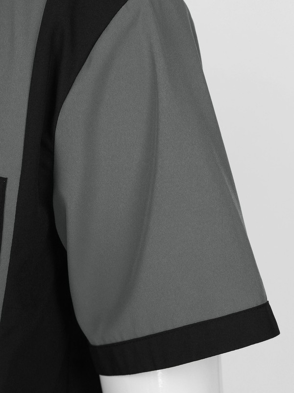 Mens Color Block Short Sleeve Tops Notched Collar Button Shirt with Pocket.