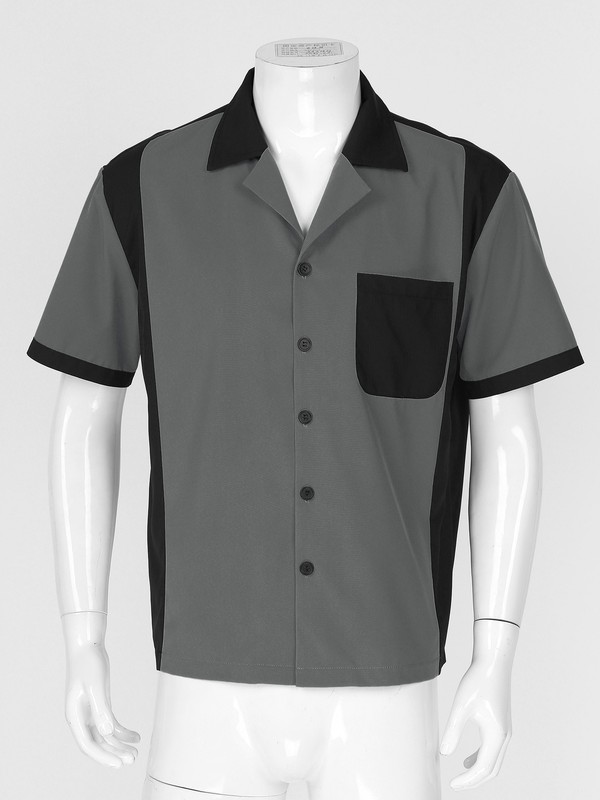 Mens Bowling Shirt Retro Short Sleeve Camp Button-Down Vintage Casual T-Shirts