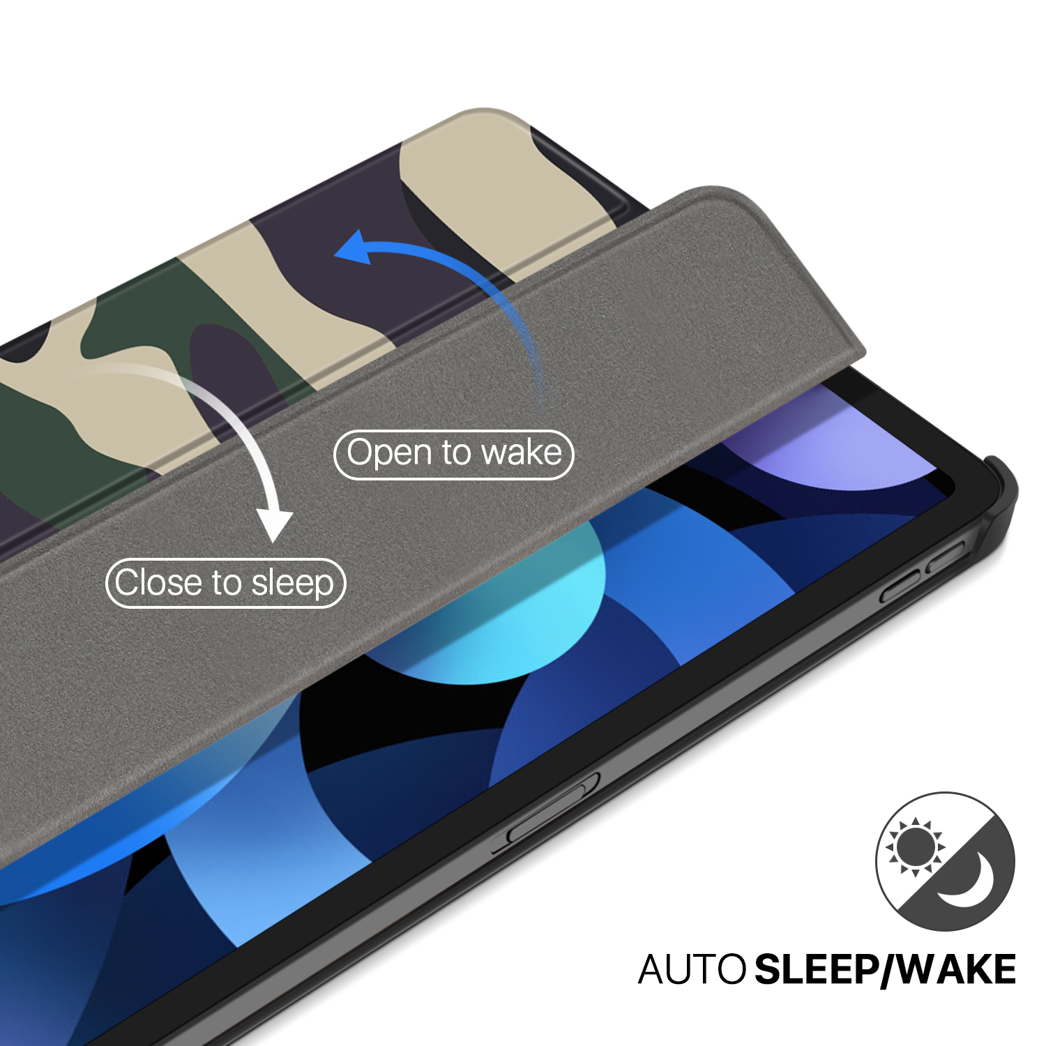 Slim, form-fitting cover to perfectly fit your iPad Air 4 Generation / iPad Air 5 Generation and provide full front and back protection. The cover is easy to securely attach and remove, and folds back for easy one-handed reading. It automatically puts your iPad Air to sleep when closed and wakes upon opening, making it easy to jump back into your book. Made of durable synthetic leather, this case is designed to be lightweight and protective, protect your device without adding unnecessary bulk, so you can hold it for hours of reading with minimal effort. With the nylon woven interior, the cover protects your iPad Air and keeps the screen clean without adding bulk, making it perfect for taking your iPad Air wherever you go.Feature: