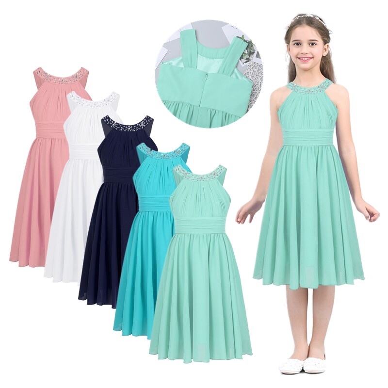 Kids Girls Chiffon Princess Wedding Dress, soft and comfortable to wear.