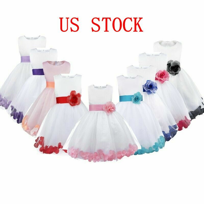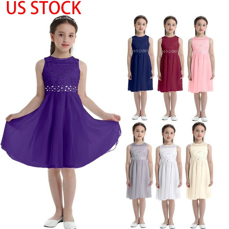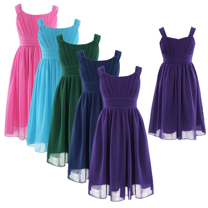 US Kids Sleeveless Pleated Chiffon Flower Wedding Bridesmaid Formal Party Dress