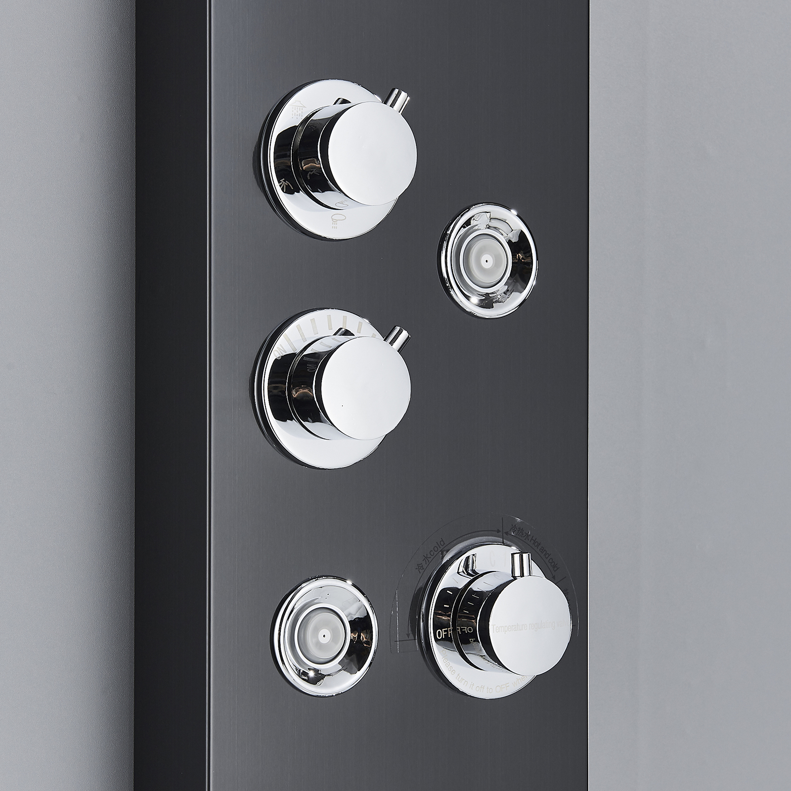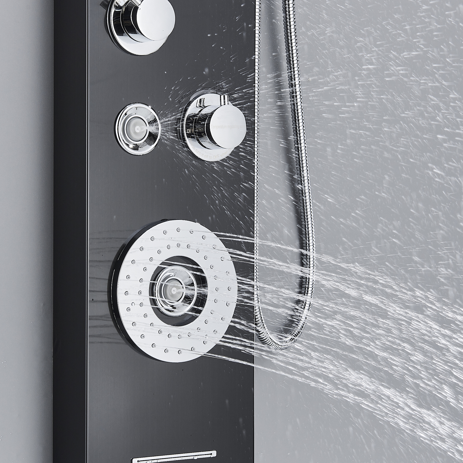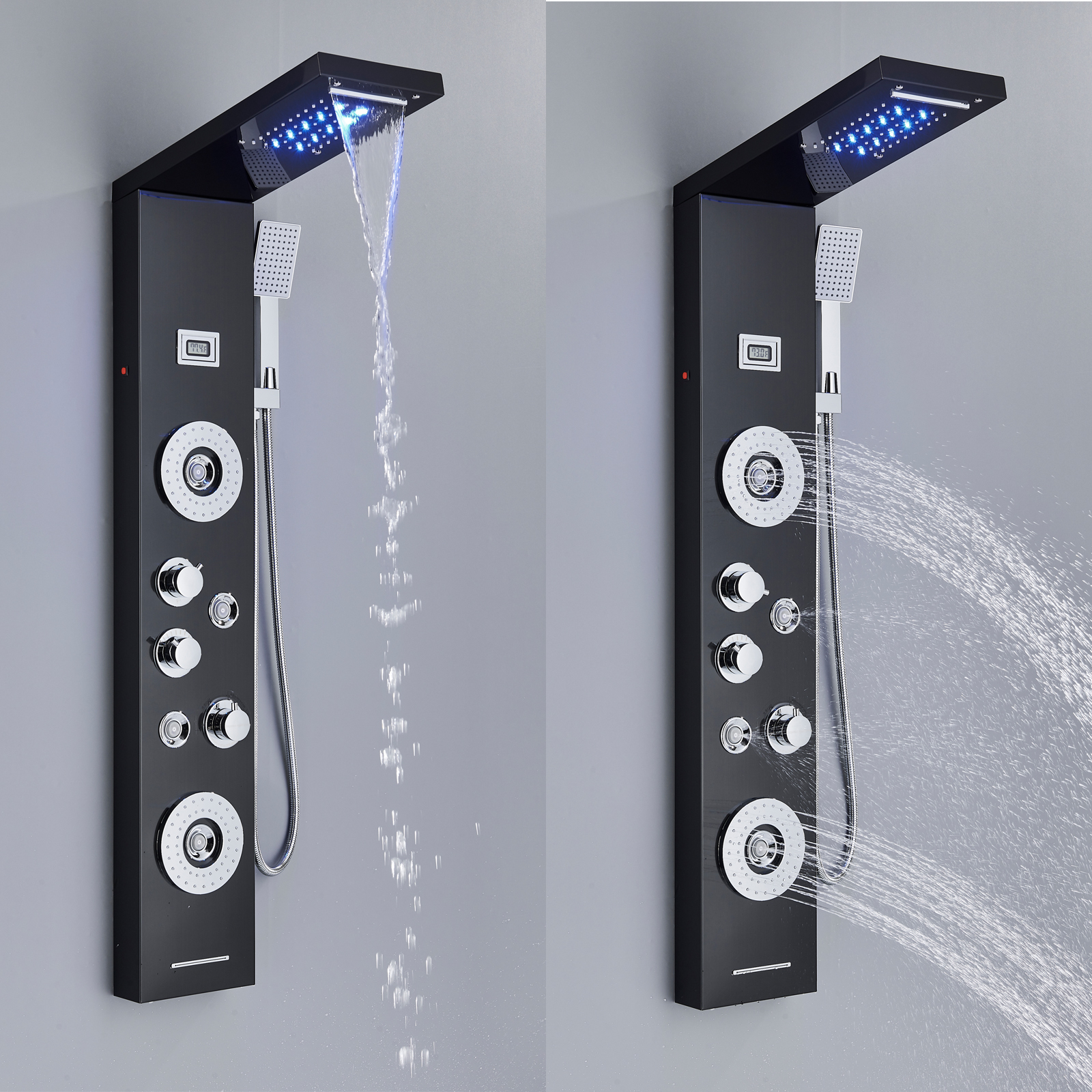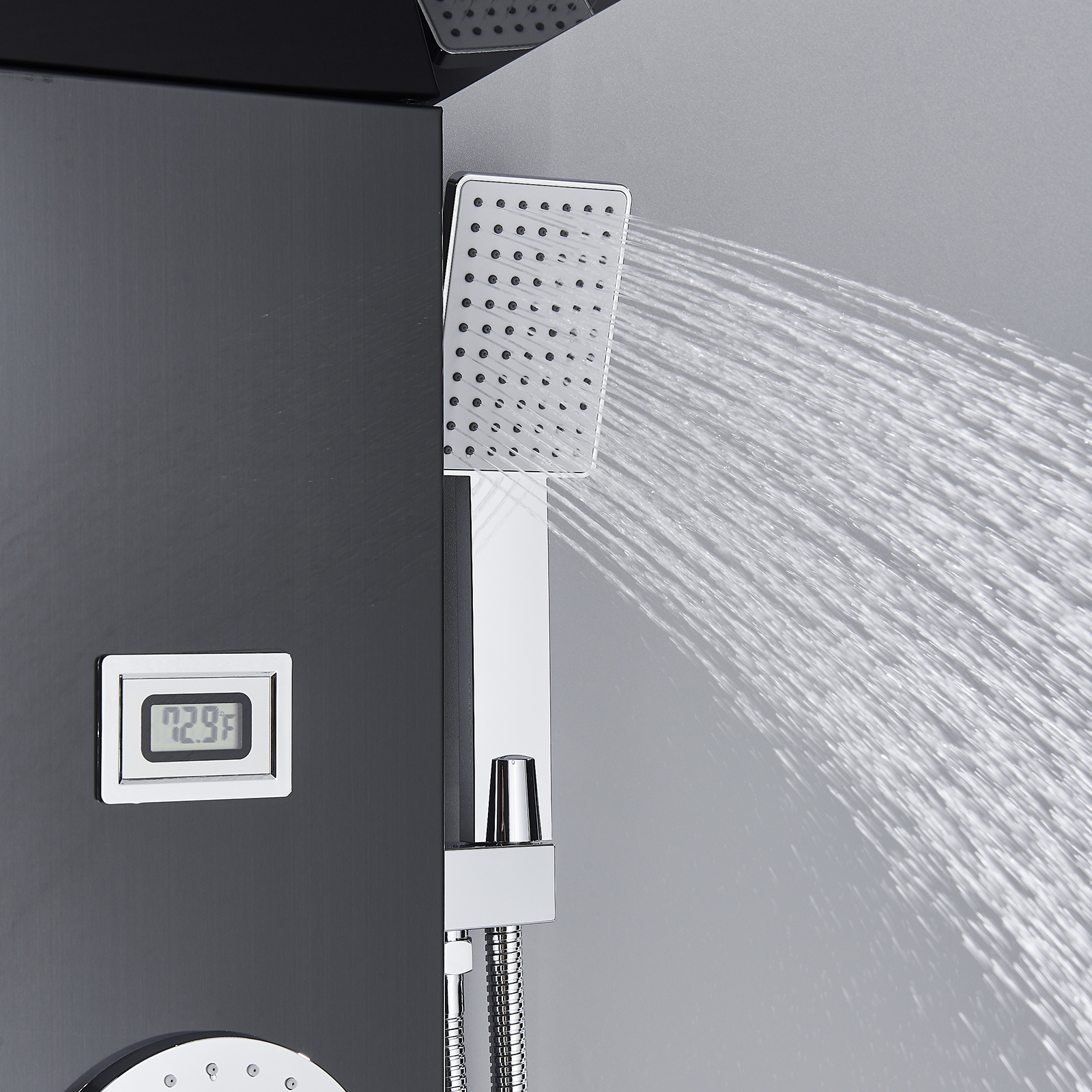 This is a multifunction shower massage panel for home or commercial use. Made of 304 stainless steel, it has five showering functions: rainfall, waterfall, massage jets, tub spout, and hand shower. Our product will provide you with a comfortable experience, drive away your fatigue, relax your mind & body after showering. Luxury color easily matches with modern decorations.