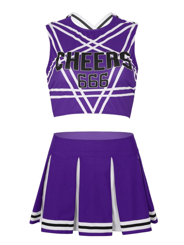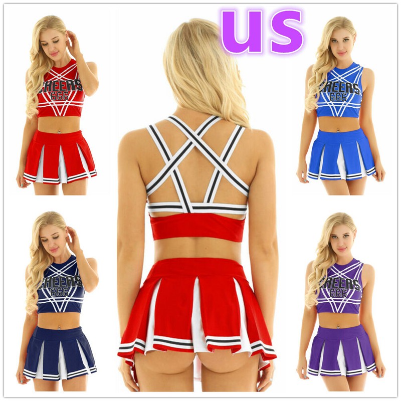 Women ladies cheerleading cosplay costume uniform set, pull on closure.