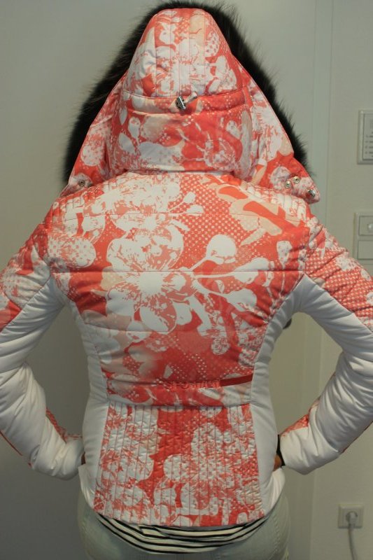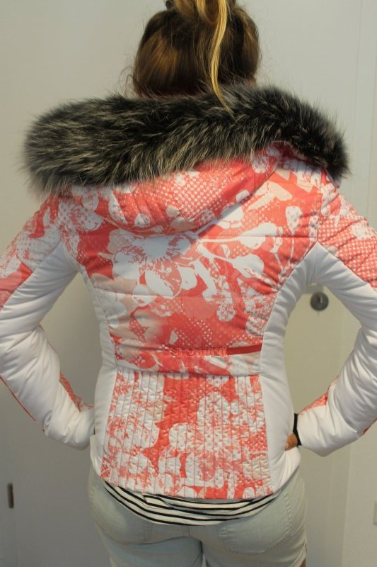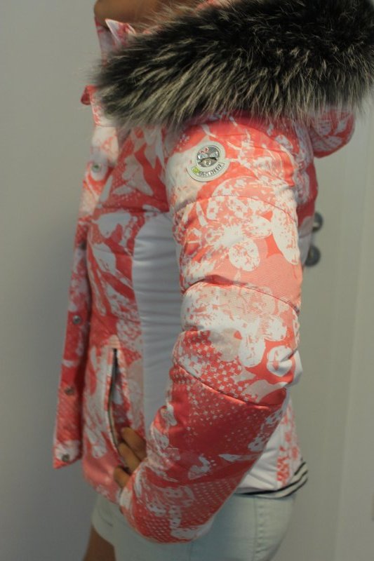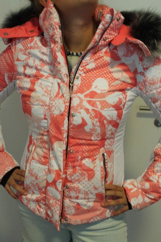 Veste de ski femme Sportalm Kitzbühel avec fourrure véritable rose blanc taille 36 S Neuf avec étiquette
