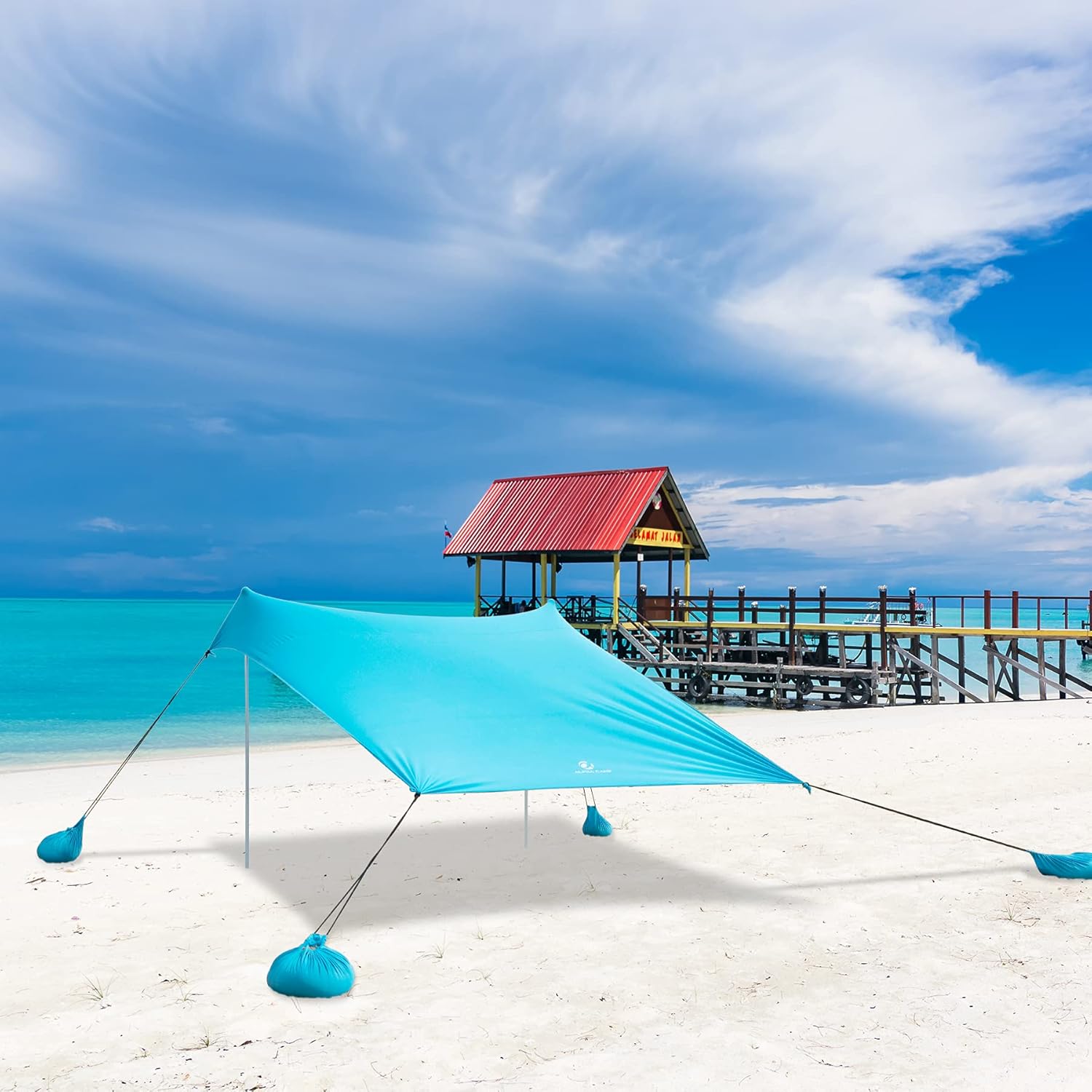 Color: Blue Material: Lycra fabric, Aluminum Dimension: 7.6X7.2X5.4 FT Capacity: 3~4 person -