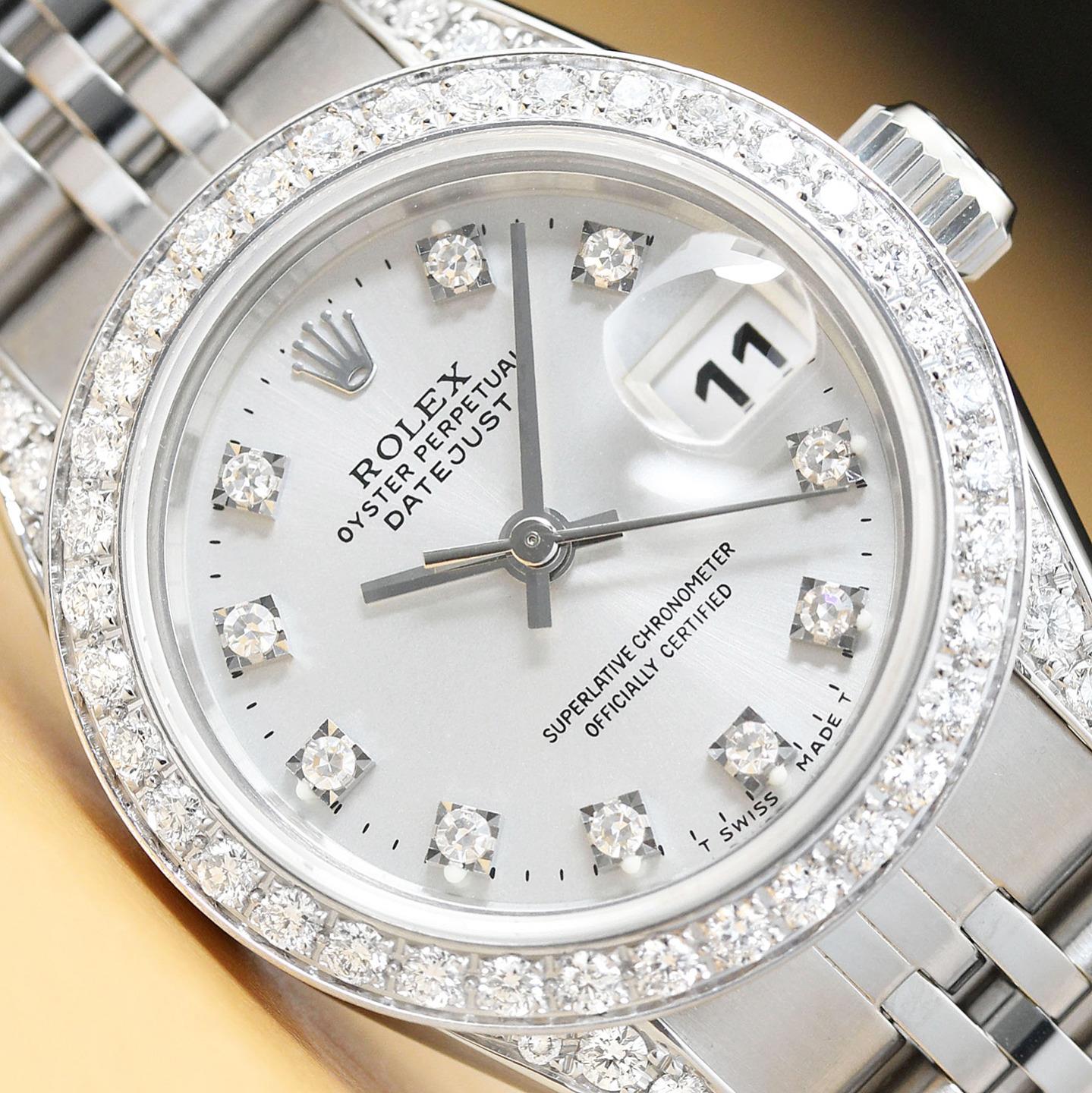 LADIES DIAMOND ROLEX DATEJUST 69174 SILVER FACTORY DIAMOND DIAL STEEL WATCH