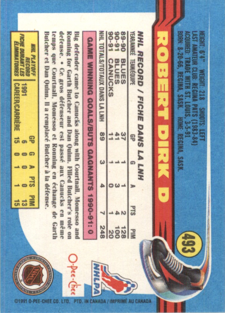 | 1991-92 O-Pee-Chee NHL 493 Robert Dirk | ||||||||||||||||