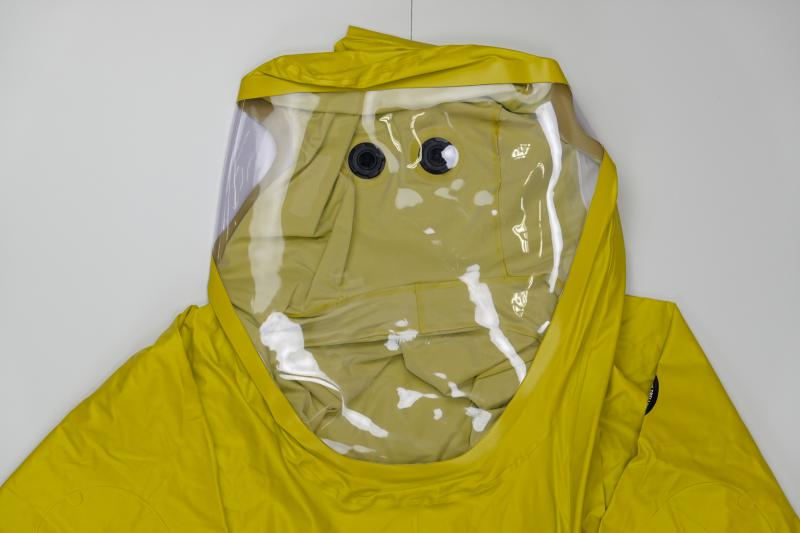 VISOR: Visor made from 1 mm flexible PVC. The visor is welded to the suit.