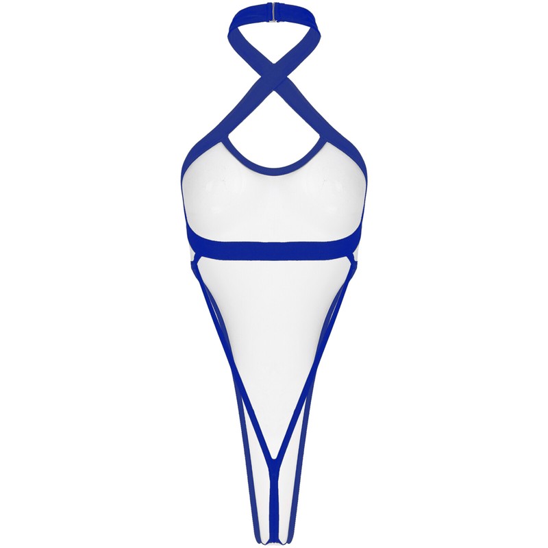 Womens See-through Mesh Halter Leotard Backless Bodysuit One-piece Swimsuit.