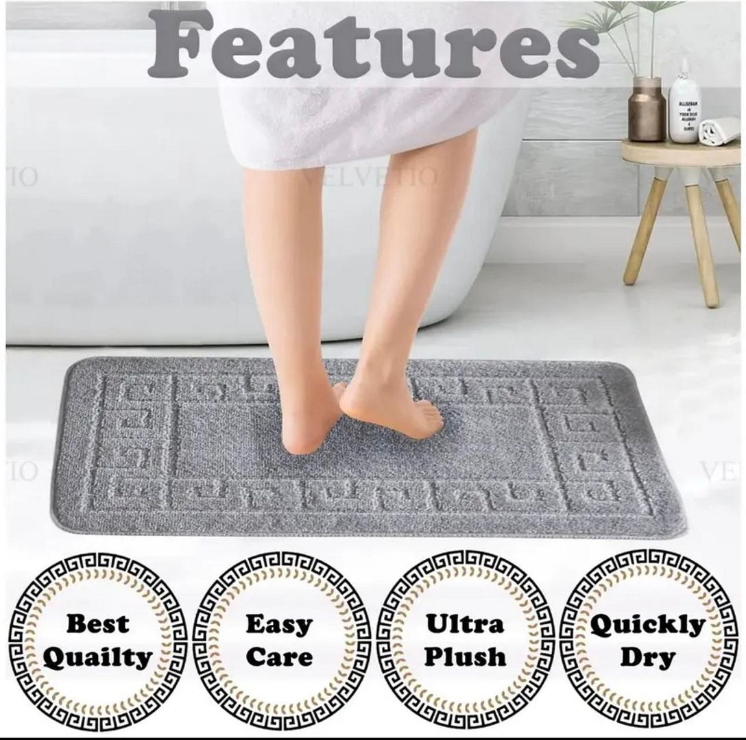 Absorbent, quick dry polyester is the perfect material to keep moisture from your bathroom floor as you dry off after a bath or shower.