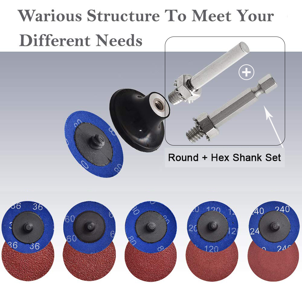 1" 2" 3"Roloc Sanding Disc Holder Roll Lock R Pad 1/4" Round and Hex Mandrel Set
